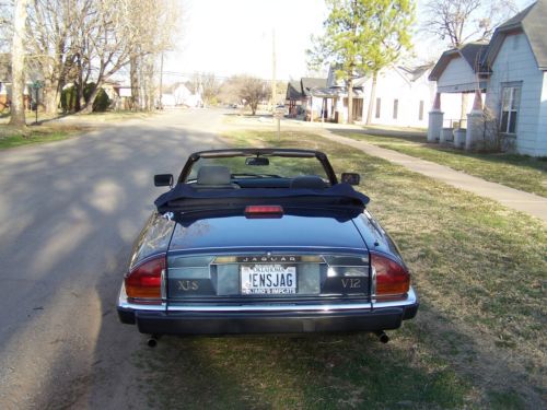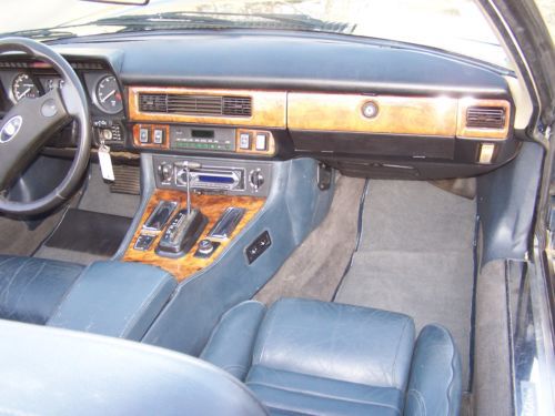 1989 Jaguar XJS Convertible Triple Navy, which is a very rare combination and few were made, and it is the last year for the V12 and that body style The car runs and drives strong except the brake master cylinder needs replaced The paint is decent with some slight chips here and there, no body damage except for a bump on the drivers rear quarter panel The interior is good but there is some rubbing on the drivers side seat and a small portion of the beading is gone from sliding in and out of the car but no rips or tears. A good auto upholstery person will be able to redye the seat and fix the beading area. Carpets are good and the top is new and works great. In the pictures I did not have the boot snapped down. The trunk area is very nice. It has the tool kit and the owners manual, the dash is nice with no cracks and the gauges work. The a/c may need Freon as it now blows cool instead of cold. The wheels and tires are very nice. My husband bought me this car for Christmas and when he died suddenly I found it too painful to drive. I just can't keep the car anymore. When he bought it, there were 74,209 miles on it, the car now has 75,864, which means only 1,655 miles have been driven. The car is very eye appealing with the triple navy combination and needs to go to someone to enjoy. It is a BLAST to drive and the value is only going to go up. It is now considered a CLASSIC! |