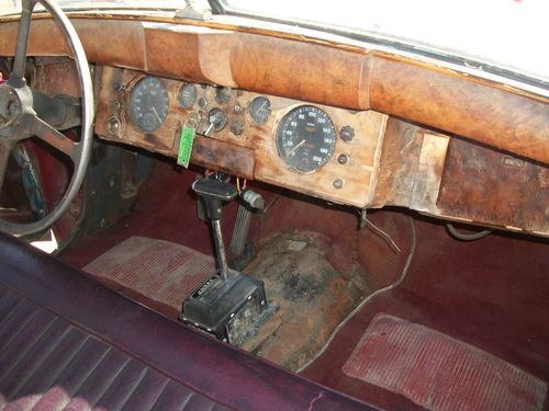 This is a very solid 1954 Jaguar Mark VII. This is not a rusted out vehicle. Has had an "Abbassi" foreign car conversion of California(do not know when but some time ago). Has a GM inline 6 cylinder with what appears to be a turbo 350 automatic transmission. Looks original. It Starts and runs very good. Engine sounds very good, has lots of power and has no leaks. The transmission also works very good and has no leaks. We drove this vehicle for 25 minutes to get some fresh fuel into system and check things out. We were very impressed how well it ran and handled. Brakes work okay but will need some attention. Body is very straight with exception to couple small dents on passenger side by trunk. Seats are good except the drivers seat is very brittle from age. It cracked when we test drove it. Back seat is not so brittle and pull down trays with mirrors are in tact and working. Sun roof opens and closes properly. Missing few pieces chrome, the top wood trim on passenger door, center piece for steering wheel, hood ornament and latch. There are several pieces in trunk such as rear window chrome, 1 side front window chrome, other trunk handle and lots other stuff like an a/c condenser(? silver cylinder with coils in it?) and other things. All glass is excellent and windows roll up and down. Doors open and shut properly. The buttons to open door compartments work and boxes are in doors. New tires. Wood dash is pretty rotten, car turns on with key and some dash lights work but the wood is pretty bad. No head liner. The wiring looks mostly original. Trunk is solid, and both gas tanks are still in it with sending units, but the right tank is only one being used. Lots of potential in this vehicle.Has California title, car is in Amarillo Texas. Drive on to trailer. Low reserve.