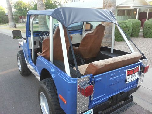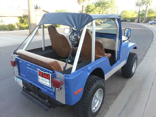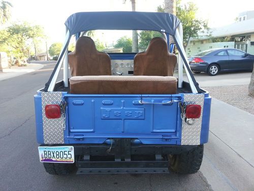 I am selling my 1973 Jeep CJ-5 that is in great condition. The paint is new and their is no rust anywhere. This is an Arizona Vehicle and it is rust free. This Jeep is ready to go. The Jeep has a factory 304 V8 engine, Edelbrock valve covers, Holly Carburetor, new alternator and voltage regulator, battery is only 18 months old, headers, true dual exhaust, 3 speed manual transmission, power steering, new bikini top and aftermarket gauges. Everything on the engine has been replaced. I don't know the mileage on the jeep. The tires have only a few hundred miles on them. The rims are a deep dish rim and have no scrapes or nicks on them. This Jeep has the original tail gate that many jeeps have had cut away. The interior has been coated with bed liner to keep it protected. The interior seats are brand new, there are no rips or tears in the material. This is not my daily driver, but I start it up and drive it at least every other day and take it out as much as I can. I don't take it in the mud or on the trails. I think it looks too nice to get dirty. The 4 wheel drive works and it has locking hubs. I have a clean AZ title in hand.