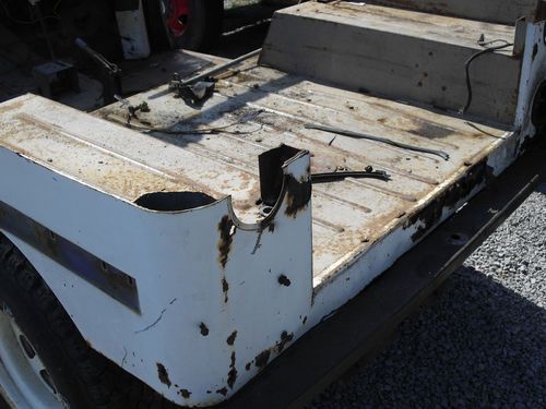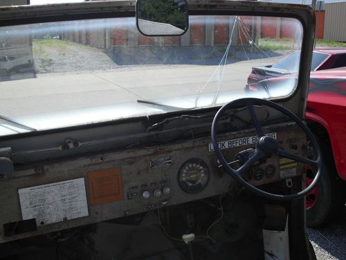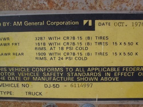 Up for sale is a CJ7 mail Jeep a 1977 model. Right hand drive that is a two wheel drive. I guess Ebay doesn't have a category for this one. What u see is all that I have for it. This Jeep has no title and the top was cut off. The doors are also missing along with the seats and radiator. The motor spins around and the rest of the driveline is there. I don't have the top some idiot cut it off. The tires look to be in good shape. The brakes have been worked on and it looks like somebody put new rear springs and a fuel pump on this one. This Jeep looks to have solid floors and frame and body braces. I took pictures of the rust on it. This would make a great doner Jeep or maybe a good beater on the farm. I have taken pictures of the option labels that should tell you everything that u need to know about this one. I am starting the bidding at 100.00 dollars and no reserve so whoever the final bidder is that's who will end up with it. The down payment will be 20 percent of the final bid due within 24 hours of the auction end through PayPal. The remainder to be paid when the vehical is picked up in cash. I will assist in loading and can deliver within a five hundred mile radious of my shop for 1.75 dollars a loaded mile. Any questions u may call or text Greg at 573-576-8776.......thanks and good luck