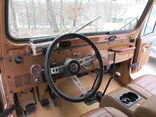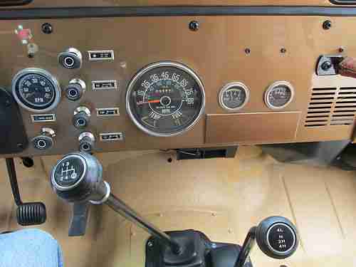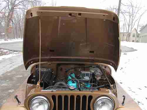 This is a 1980 CJ-7 Jeep Golden Hawk/Eagle. Finished in Alpaca Brown metal flake with completely all new OEM graphics and equipment. Numbers matching, 69,000 miles on chassis. Engine has less than 100 miles. Motor totally rebuilt using stroker package to upgrade to 4.6 liter. Engine package from 505 Performance Company. Crank and rods are forged with hyperectic pistons. Hard top and doors in excellent shape with new seals. All glass in great shape. New windshield and cowling. Wheels have been sandblasted and pinstriped. Basically, I have returned the vehicle to showroom condition. All replacement items are OEM with emphasis on originality. New upholstered custom seat covers, rear seat is original and in great shape. Inside tub is Dura-Bak with two coats. Under-carriage has been cleaned and detailed. I have spent last 1.5 years returning it to this level. Enjoy the pictures and if you have any questions call Rogers at 573-220-4285.