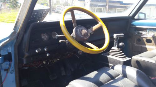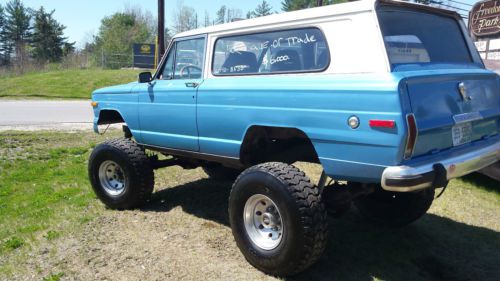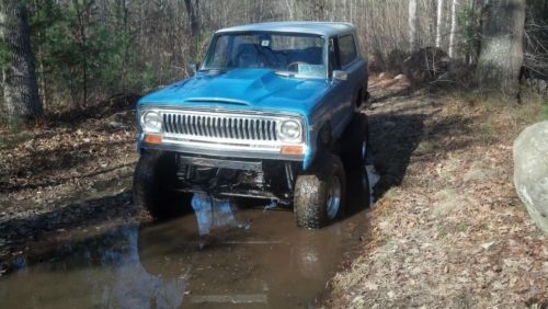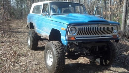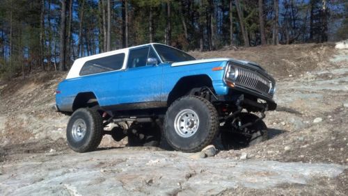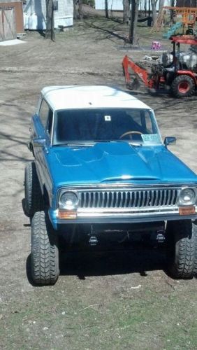 Great looking, sounding, running and driving, rare Jeep Cherokee Chief. Totally custom built, solid no rot or rust anywhere. Fully boxed frame, custom front shock hoops with dual Bilstien shocks up front, 8 lug dana 44 with steering stabilizer. Corporate 14 bolt out back. Great running small block Chevy 305 with mild cam, edelbrock intake an 600 carb, new hei distributor, and flowmaster exhaust. A perfect shifting Turbo 400 and 4 wheel NP205 transfer case which also shifts perfect. Really nice Goodyear M/T Radial 37x12.50x16.5 military tires with great tread, on new 16.5x10 Aluminum rims. All exterior lights work, interior gauge lights do not. The interior floors have been rubberized undercoated, the exterior just received a quick sand and paint in the original Jet Set Blue (comes with a quart ready to spray if needed), looks awesome, but not a ten footer. The vehicle is 95% finished, to be absolutely perfect it will need; to have door locks installed (have them), also have custom door panels that need to be installed, needs the back window regulator, glass is a little tricky to go up and down but it does work, the power seats in the vehicle work, but are not wired in. It needs a front drivers wheel bearing, transmission pan gasket also leaks slightly, other than that it starts, runs and drives great. It will need to have the front bumper mounted, but does come with two to choose from. Also have to good condition doors with glass and hardware with no rust (the ones that are on it are great shape too) This is a solid, rare, great condition Jeep to play with or drive anywhere.