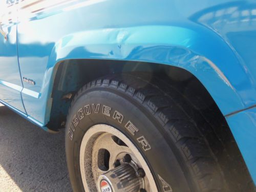Pictures show damage to rear quarter panel from wife backing into it. As well as rear bumper slightly tweaked and paint scratched. Wife again! You will not find a nicer unrestored Cherokee anywhere. She is not perfect, but really nice original condition. Message me with any questions. |