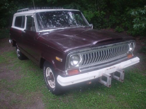 Here is a classic 1978 Jeep Cherokee 4X4.This Jeep has been sitting for a few years.The previous owner stopped driving it daily after purchasing a new car.He did start it now and then but basically let it sit hoping to restore it. I was able to purchase the truck after he realized he would probably never have the time to work on it.He shared many fond memories about the Jeep as he reluctantly parted with it.I put some fresh gas in it,charged the battery and it fired right up with no smoke or noises.I drove it home about ten miles with no problems.It is equipped with the legendary 258cu.in. 6 cylinder and a 3 speed manual trans.It also has power steering,power disc brakes and Warn locking hubs,The brakes and clutch feel good.The transfer case,hubs,and four wheel drive work smoothly.The odometer shows 57,712mi.The title shows 255,400mi.I am not sure of the true mileage.The body still wears 90% of its original paint!There is obviously some significant lower body rust especially in the rear quarter panels.Much of the rear quarter rust could be covered by installing the factory type wheelwell flares.One of the tailgate hinges are broken but you can open and close the gate. The floors have rust at some of the seams and a small sheetmetal patch near the driver seat.The frame looks solid but it is scaly and crusty near the rear bumper and hitch area.The front bench seat has been replaced with buckets.The original rear seat is in great condition.The headliner is falling and the carpets are shot.The dash and components are in decent shape.This is a project truck that needs restoring!It would need a good going over before driving any serious distance.The belts,hoses,tires should be replaced due to age.The lights,signals,heater,defroster,wipers,guages,and even the power tailgate window all work! I have the original owners manual and a service book. This is a project truck being sold as is with a clear NJ title.