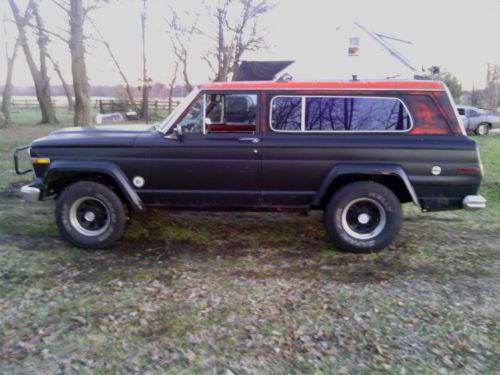 Up for bids is a 1979 Jeep Cherokee Chief Sport. It has the original AMC 360 V8 with a 2 barrel carb. This thing runs great with no engine noise or smoke and starts everytime. It is obvious that it has been rebuilt at some point but not sure when. The transmission shifts good with no issues and the 4 wheel drive works good in all ranges. It is all time 4 wheel drive with the quadra trac selector in the glove box and a lever under the seat to lock it into low range. It has dana 44 diferentials front and rear and they are both in good shape. It has had new u-joints installed in the rear driveshaft. I have the new ones for the front driveshaft but just never put them in because there still tight. It has had a new u-joint installed in the front right axle as well as new bearings. The frame is in good shape with only surface rust, no rot or holes. As far as the body goes the outside is in decent shape but around the back wheel wells the inner and outer panels have rusted apart and someone has sprayed foam from the inside to seal it up. I guess it works but if your wanting to restore it the foam will need to be removed and the metal welded back. The window in the tailgate works(although someone wired up new switches for it) but the tailgate hinge on the passenger side has came loose. It will still open and close you just have to play with it a little bit. The tires are 31x10.5 and in good shape with right around half tread and they are all wore evenly. This jeep is by no means a show car but you can jump in it and drive it wherever you want to (on or off road). If you have any questions on something I may have forgot to mention feel free to ask. If you have little or no feedback contact me before bidding or your bid will be cancelled. Thanks for looking and good luck