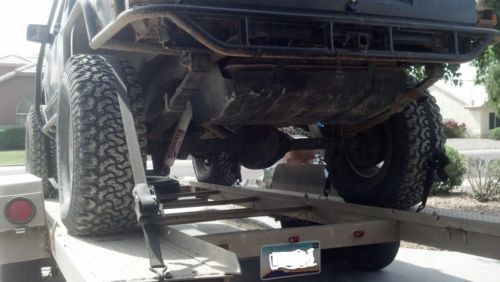 exterior role cage, rear 35 dana, front 30 locker, high lift jack and mount, spare tire and rack cb and cd stereo. Runs good auxiliary fan tool box. Rock crawler motor mounts, 33 inch tires