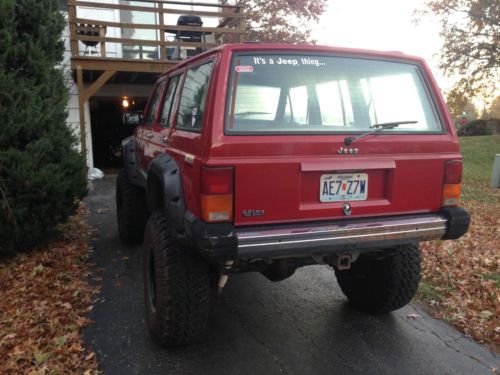 I've owned the Jeep since 1999, when it had 91k miles on it. It was my high school and college vehicle so it was very well taken care of. Once college was over, it turned into what it is today. I've grown out of the off road scene and haven't had it on a trail in 4 years. I recently upgraded the brakes and steering to make it more drive-able on the road, but with a baby on the way it's not practical. I'd like to see it go to someone who will take care of it and enjoy it. In my opinion the Jeep Cherokee is one of the best vehicles I've seen, the 4.0L is solid and very tough. Details: Clayton Offroad long arm with Skyjacker 8" coil and aluminum adjustable spacer on front Dana30 (4:88 geared, yukon) Rusty's dana 30 weld on truss kit for added strength. Rusty's offroad 6.5" leaf springs with 2.5" Rusty's shackles and axle shims on Dana 44 from a 1988 XJ(4:88 geared, yukon) Woody's heavy duty front driveshaft, lifetime warranty Woody's heavy duty rear driveshaft, lifetime warranty NP231 transfer case Slip Yoke eliminator kit with heavy duty short shaft from Advanced Adapters Skyjacker 8" coil, and aluminum adjustable spacer 37" 12.5 R15 GoodYear MTR's roughly 2,000 road miles Inline 6 4 speed auto & 231 transfer case Headliner replaced Very clean and good interior Paint is not faded A/C and heat both in working order, A/C will need to be charged Hedman Hedder Rusty's open air intake. WJ knuckle conversion Abekono dual piston front brakes (WJ rotors are 1" larger in diameter than stock XJ) Heim joint custom steering, with drop pitman arm, Currie Enterprises track bar and steering box brace. Front TJ tow hooks no sway bars New battery (May 2013) Engine runs smooth (other than when the tank is low), oil always changed at 3k miles, crank shaft position sensor replaced recently, always reliable, always starts and always runs. There is some body damage on driver's side front fender, door and above door. Doesn't affect function. And I have a red door and fender from a 1992 sport that we can negotiate into the cost if wanted. Tires need balanced for speeds over 60mph. A/C compressor works, but needs charged. Drivers side motor mount needs to be replaced ($12 part). Rough idle when tank is low, tank may have some rust in the bottom that causes hesitation. Not consistent and only when tank is low. Kenwood stereo doesn't work. I have been driving it to work once or twice a week, so the mileage is going up (200 miles a week). It does ok on the highway, but the tires will need to be balanced. Please message me if you would like more pictures |
