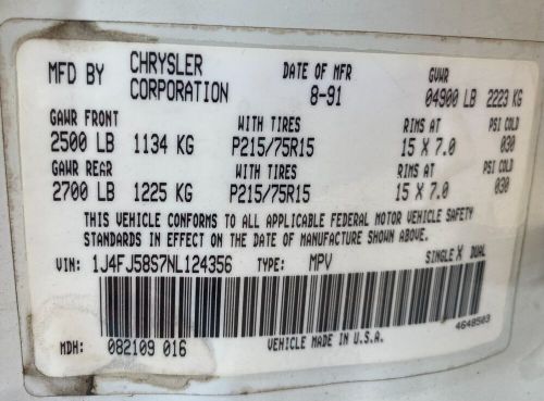 VIN (Vehicle Identification Number): 1J4FJ58S7NL124356