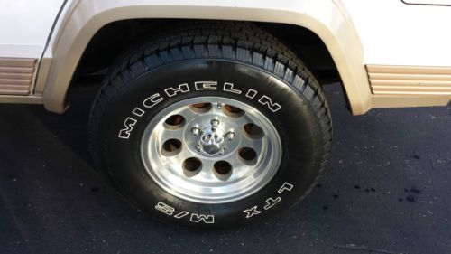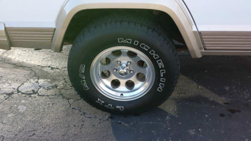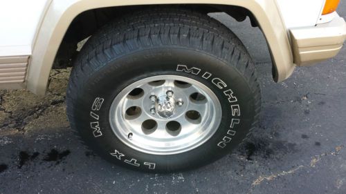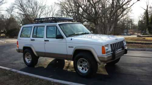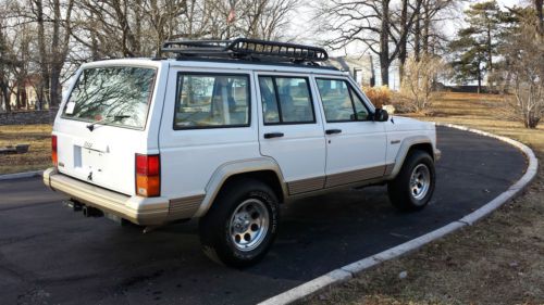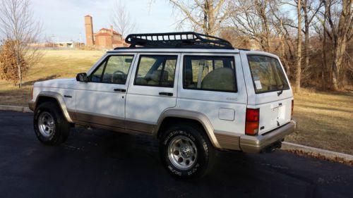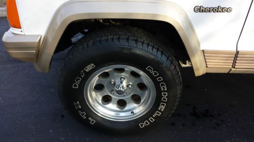 UP FOR SALE IS OUR 1994 JEEP CHEROKEE COUNTRY. LOW MILES FOR ITS AGE. THIS IS PROBABLY ONE OF THE FINEST EXAMPLES OF AS FAR AS OVERALL CONDITION FOR THIS STYLE JEEP. THIS JEEP HAS SPEND MOST OF ITS LIFE IN FLORIDA UNTIL I HAD IT SHIPPED UP TO ST. LOUIS FOR MY ENJOYMENT. IT HAS THE HIGH OUTPUT 4.0 STRAIGHT SIX. EQUIPPED WITH A POWER DRIVER SEAT AS WELL AS AFTERMARKET CD/SAT RADIO/BLUETOOTH. THE 4X4 WORKS PERFECTLY AS WELL AS EVERYTHING ELSE ON THIS JEEP. BEAUTIFUL TAN LEATHER SEATS KEPT IN GREAT SHAPE OVER THE YEARS. IT RUNS AND DRIVES PERFECTLY AS WELL. UPGRADED WHEELS AND TIRES HAVE ALSO BEEN ADDED. THE ROOF RACK WILL ALSO BE INCLUDED WITH THE PURCHASE. WE ARE A LICENSED MISSOURI DEALER AND THIS JEEP HAS BEEN OUR SHOW PIECE AND AS WELL AS OUR FAVORITE VEHICLE TO TAKE OUT A GOOD CAMPING TRIP OR ANY OTHER PLACE OF ENJOYMENT. IF YOU HAVE ANY QUESTIONS ABOUT THIS JEEP PLEASE DO NOT HESITATE TO CALL EITHER ME (CASEY) AT 314.226.6825 OR JON AT 314.387.3378. GOOD LUCK AND HAPPY BIDDING!!!