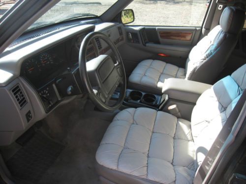 This Grand Cherokee Limited is in remarkable shape. Owned and driven by an adult professional. Never taken off road and never used as a family car. The interior is deluxe pillow like leather with virtually no rips or wear. The car has no dents and was never wrecked. The black paint is bright and shiny. It does have several dings and normal scratches. Everything works and it runs perfectly. This Jeep is perfect as a reliable, low miles luxury SUV second car or a time capsule daily driver.