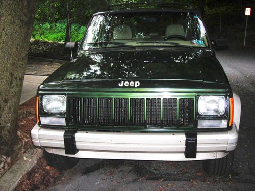 Classic Jeep Cherokee Country edition, 1996. Green/Silver with Tan Interior. This Jeep RUNS like a TOP!! Most dependable vehicle I ever owned - would not hesitate to drive it across country and back! Alway well maintained by all owners: recent work includes new Serpentine belt, Power-Steering Pump, Headlights, Brake work & Rear Seals, Tune-Up with new Plugs-wires-ignition, Oil and Filter (recent work receipts over $1,300.00). Tires are great with a lot of wear left. Everything works including the 4-wheel drive, AC, Power Windows and the light under the hood too. Has an aftermarket CD Player installed in the dash (professionally) and is a Kenwood unit with Factory style aftermarket speakers in the rear. Interior is good, but shows it's age (could use a good cleaning). Body is very solid and pretty much rust-free with good paint. Has good full-sized spare also. Be a GREAT winter ride, hunting vehicle or car for the kid off to school. ALWAYS ADULT owned and driven - has Current PA Inspection, Price reflects condition and reliability (do keep in mind, she is 17 years old).