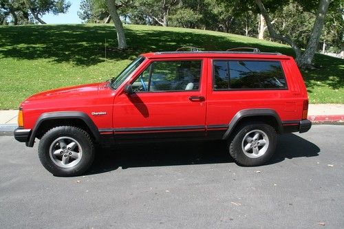 Up for auction is a 1996 Jeep Cherokee Sport 2 door in excellent condition. Paint looks new and there are no dents or dings. There are a few scratches on the black bumpers, but other than that the outside looks great. The interior is in good condition. No rips or tears, but there are a few stains on the carpet. Nothing major, but I am trying to list everything wrong with it. There is a slight chip in the windshield about the size of a penny and it could be fixed easily. It has a CD player and it is a manual transmission. It is easy to drive and it has been very well taken care of. Tires are all terrain and in good condition. It is fun to drive, and you won't be disappointed!