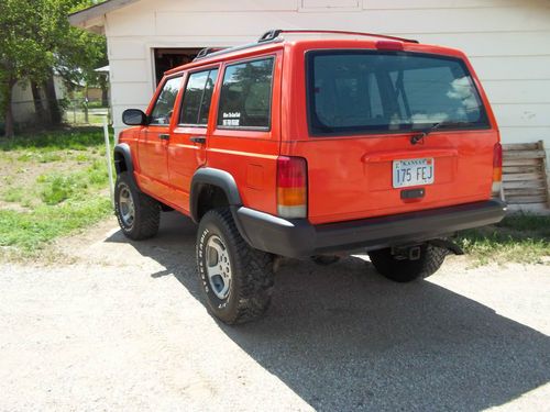 I have a 1999 jeep cherokee for sale. I need to get it sold. I have too many vehicles and need to get this one gone. It was purchased so my son had something to drive while his wrangler was being repaired. It has a real strong 4.0 motor with plenty of get up and go. The transmission is solid and causes no problems. Some one put a lift kit on it. I think it is a 4.5 inch with all the proper extras( drop track bar, long arm four link in the front ect...). Tires are 30X9.5X15 with 60% or so tread. Some one painted it and did not paint inside the doors but outside of that paint is good. It shows a rebuilt tittle but it drives good. The right hand rear trim piece is gone but I have one on order and will put it on before the end of the auction. Any questions just email me. I would consider trading it for a chevy or dodge class C mobile home. I set the reserve well below the buy it now price .