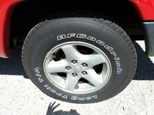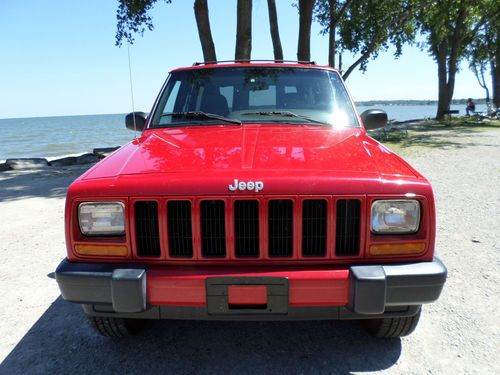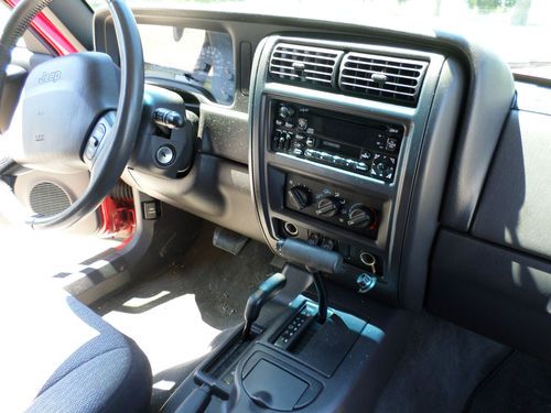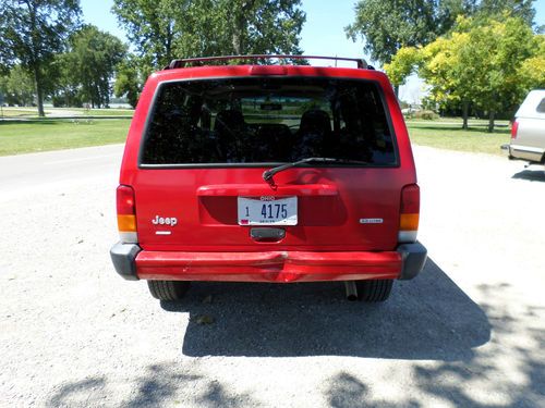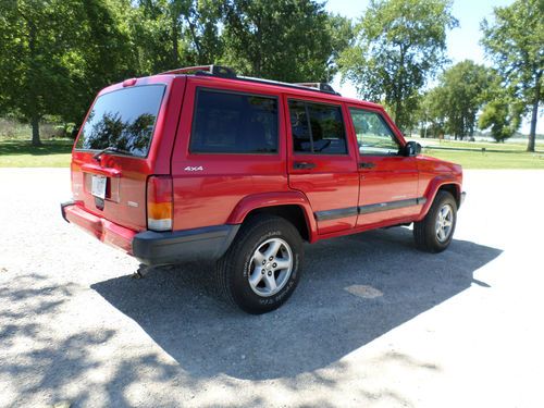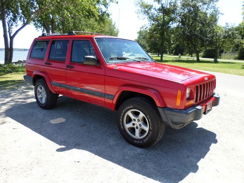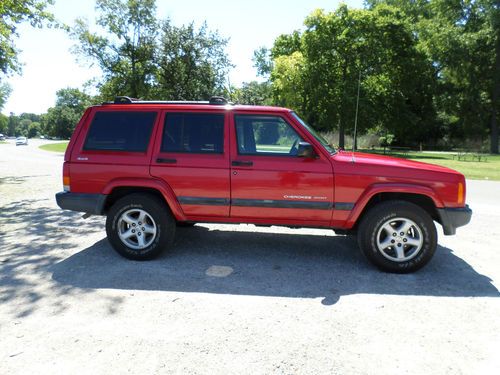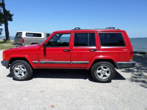 NO RESERVE !!!! YOUR LOOKING AT A CLASSIC 2000 JEEP CHEROKEE SPORT 4X4 WITH THE INLINE 6CYLINDER THAT IS BULLIT PROOF BEST ENGINE JEEP EVER CAME OUT WITH. THIS IS A FRESH TRADE RUNS GREAT WITH NO LIGHTS ON THE DASH. RED WITH GRAY CLOTH INTERIOR CD PLAYER CASSETE PLAYER, CRUISE CONTROL, POWER WINDOWS POWER LOCKS. 4X4 WORKS PERFECT TIRES SHOW ABOUT 80% TREAD LEFT ON THEM . AS SEEN IN THE PICTURES A FEW FLAWS NOTHING OUTRAGEUOUS. A DENT ON THE BUMPER WHICH DOES NOT SHOW ON THE CARFAX ALONG WITH A LITTLE RUST SPOT ON THE DRIVER SIDE DOOR AS SEEN IN THE PICS. TRANSMISSION WORKS GREAT NO SLIPPING OR POUNDING. IF YOUR LOOKING FOR A VERY RELIABLE CLASSIC GOOD OLD JEEP THIS IS THE ONE FOR YOU.