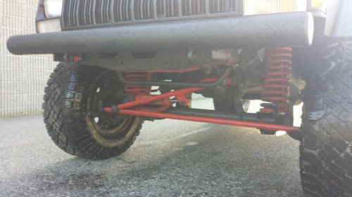 ok this is a 2 wheel drive jeep with a 6.5 inch rough country lift..(save money on gas with the 2wd but get the big look of a 4 wheel drive...)33 12.50 15 goodyear wrangler tires in god shape about 75% left.nice alumunom rims .full size spare( steel rim) ,roof rack,.custom bumpers with rear bumper as a air tank,super clean no rust issues runs great.tranny shifts fine .performance exhaust,grant steering wheel,,,.all doors open and closes great .all windows work accept pass rear needs small swicth on driver door (was tested and motor is good switch is bad)heavy duty hitch,,new head liner with ghost camofloge .cold air intake ..wired for amp has nice flip down removable face radio .alpine speakers,,drives good and is fast but is a lifted jeep and drives like 1 ,interior is complete but a little dirty .this is a fun jeep and turns heads everwhere it goes...if u got any question s please call 631 831 3993