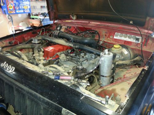 Drivetrain: engine is a jeep 4.0 with several mods done. The intake manifold and throttle body were custom ported by Newcomer Racing (newcomerracing.com). Its got 4 hole ford fuel injectors. The air intake was ran through the firewall to the interior. Its got a remote mounted oil filter that runs through a large oil cooler. Engine has custom mount plates and motor mounts by Brown Dog Industries (browndogindustries.com). Engine has a stainless steel header that exits through custom built exhaust. Transmission is an AW4 that is pretty much stock except having the line pressures raised slightly. The transmission is cooled by a remote mounted cooler with its own electric fan. All transmission lines have been rerouted to keep from being smashed by suspension components (common on cherokees used for off road racing). Axles: Front axle is a dana 30. The houseing has been heavily trussed with 3/8ths plate to keep from bending and breaking. The inner c's have been gusseted also. The steering is made up of 7/8ths heim joints and 1.5 inch .25 wall dom tubing. All of the steering mounting points are mounted double sheer. The rear axle is a ford 8.8 with disc brakes. Suspension: The front suspension is a custom marsfab offroad long arm set up with Barnes4wd Enduro joints. The front also has Fox 2.0 remote reservoir shocks and fox 2.0 4" travel air bump stops. To round out the front suspension there is also custom torsional sway bar. In the rear the jeeps got leaf springs mounted with Liquid Iron Industries slider boxes in place of the factory shackles. The rear also has Fox 2.0 remote reservoir shocks. All the shocks have been custom valved and tuned by Carolina Truggies. Chassis: This jeep has a one off custom roll cage. The cage ties into the unibody front to rear to really stiffen the body of the jeep. The cage also passes through the firewall and attaches to shock and bump mount area to stiffen the front end up. There are custom built chassis stiffeners on the bottom side of the jeep also. The interior has been completely stripped from the jeep. Now the inside contains Hunsaker Racing suspension seats mounted into the cage. Its got Racequip 5 point harnesses. There is a custom built aluminum gauge pod. Its also got a Whelen siren inplace of the horn. Really helps when your trying to pass other competitors. Its got a quick release steering too. Misc: Jeeps got bladder style 32 gallon fuel cell. To meet the rules for most race series all fluids have been run to custom built catch cans. The jeeps got a 8000# winch mounted to custom prerunner style bumper. Its got hid off road lights up front. Tow points front and rear. Custom mounted spare tire and high lift jack. First aid kit and fire extinguishers. 33x12.50x15 general grabber red label tires. The list goes on and on. Im sure I am forgetting some things. All in all this is a great race rig or weekend warrior. You could not buy all the parts on it for the buy it now price let alone all the materials and labor in fab time. My loss is your gain. |