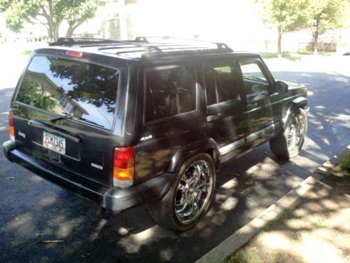 Chrome 22" Rims Extra set of 18" Rims without tires see pic in listing. Pioneer 7" in-dash touch screen DVD/CD/Radio/MP3 player etc.. Pioneer door 3 way speakers New power steering hose New Hid headlights 10,000k Hi/Lo beam, with slim ballast. 15" Flip down monitor, with built in dvd player and usb port. Recent front end done within a year to date. (You may Inquire about add in a bass/sub-woofer/s box enclose ,Memphis hybrid 5 channel amp and Precision Power Sodana 2 channel with 2 Electro Voice force 10ens in a custom fiber glass enclosure for this Jeep, not included with sale but can be if you want.) driver side window a little noisy when it goes up and down. heat good A/C needs recharge. Transmission Excellent, shifts right on time all the time all gears work for 4 Hi Lo and 2 wheel Hi Lo for the best driving experience, i love it i can get out of any spot with it. New optima deep cycle battery. Clear title. Ready for the road. LED interior dome lights minor dings dongs here and there right fender stolen off the jeep. cost about 20-80 to replace new or used. see pics ask questions. All sales final. No returns as is. |