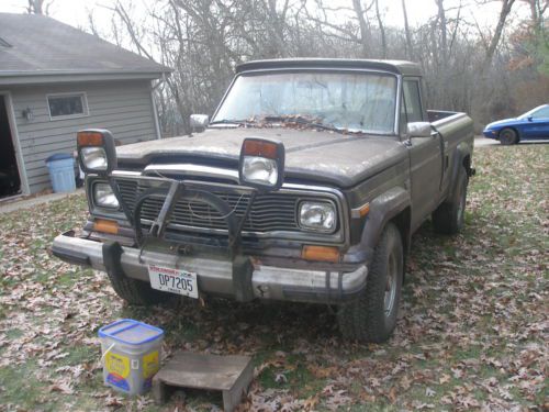 1980 Jeep Laredo Truck. Used truck with 50,555.4 miles (may not be original miles, previous owner said motor was rebuilt). Jeep has heavy duty driveline, and may be equal to 3/4 ton. This is a project vehicle, it has no spark, the brake line is broken and the body is in fair condition. Tires and rims are in good shape. This truck originally had a Meyer Plow attached, the plow is no longer available and does not come with this auction.