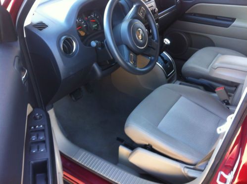 Tan interior, new Jeep floor mats. Has CD player with MP3 input, and is a 4x4 for off-road or terrible weather. This Jeep gets much better gas mileage than the other models with 22 mpg city and 26 mpg highway. Very nice and smooth car-like ride for trips but has the muscle to get you out of a jam. 2.4L engine provides ample power with fuel economy. Color is dark red, somewhere between red and burgundy. Factory warranty remaining until 36,000 miles also with remaining 5 year/100,000 mile power train warranty. Very nice car with absolutely no mechanical problems. This has been well taken care of and has no accidents on Carfax.