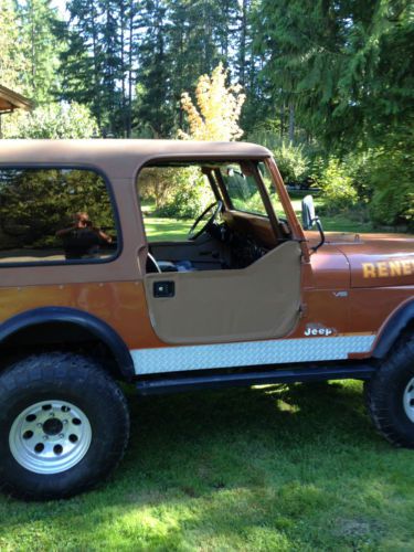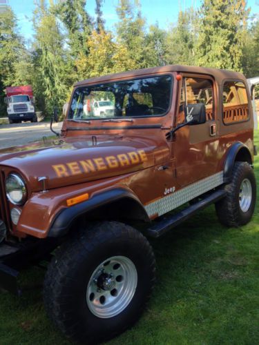 1983 CJ7 Renegade. 360 v8 5speed. Power steering. Power brakes. Tilt wheel. Hard top. Original paint. 33in bfgoodrich tires. Carpet kit. Rear mounted high lift jack. Comes with bikini top and matching half doors. Great condition. Minimal rust on bottom of doors. Small dent on passenger side panel. Small scrape on passenger rear corner. Small amount of rust on windshield frame. Runs and drives excellent.
