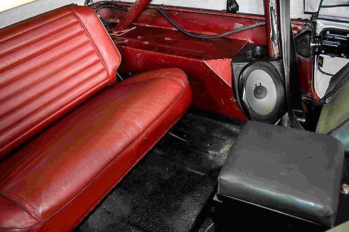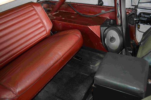 The ratchet mechanism on both the driver's seat and on the emergency brake needs attention. There are a 2 or 3 spots where there is some rust on the body. Passenger side seat-belt may not work (I was just told). Rear seat not bolted down right now. There is a crack in the windshield.