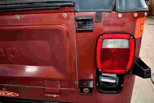 This Jeep is running Great. I bought this Jeep in 1994. I am always adding upgrades - too many to list. The Jeep is Burgundy and Orange in color and the paint job is in good condition - All original paint and striping. The Jeep has a great combination of tactical upgrades while keeping the "stock" look and feel. I added an over-sized ignition system and spark plugs for more horsepower and better mileage. Interior is Rhino-Lined. Plastic Valve Cover has been replaced with a Stainless Steel cover. Jeep has new Maxxiss Mudder tires and a new soft top. It also has stereo system with wake board speakers on roll bar. Great sound while on the road without a top. Fully adjustable shocks allow for towing or off road use.