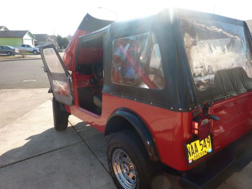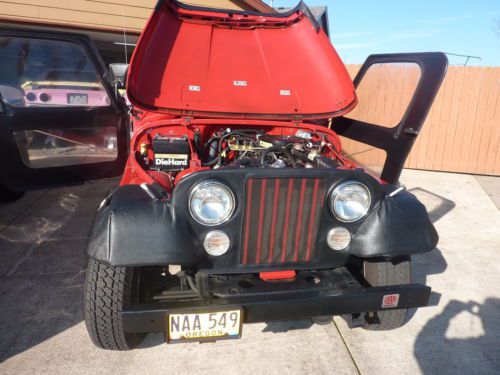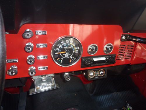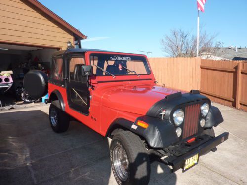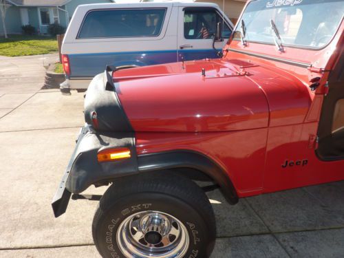 This is a 1985 Jeep cj7 you are bidding on, I am the second owner of the vehicle it is very pristine. Bought new of the showroom floor in 85' it has always been garaged never driven in the rain or taken off road. Vehicle has 2 small blemishes on the hood about the size of a pinky fingernail. You will also receive the factory rims all 5, the soft top and the bikini top, factory carpet kit (never been put in), 2nd set of NOS badges for when the factory wear out, NOS aftermarket valve cover, have the factory manuals from 85 currently has a set of aftermarket rims and tires on it, seat covers to keep seats like new. It has manual brakes and power steering, clutch is great this is mechanically sound running vehicle start up and drive wherever you like. This is a very nice jeep to add to your collection the first owner was a family of mine so there are no doubts on knowing the condition of this vehicle. Shipping is not included buyer will setup and handle shipping. Happy bidding! Other pictures needed will be sent via email upon request.