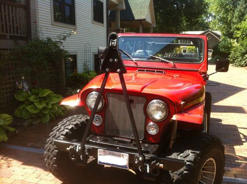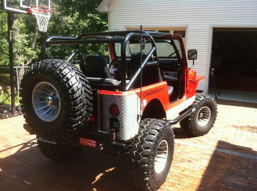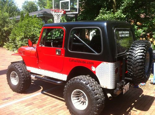 258 Clifford motor, 4-barrel double header, Flowmaster exhaust all the way back, high amp alternator, Dana 44 axles, 456 gears, 4-speed Chevy 3/4 ton trans, Detroit Lockers front and rear, new brakes front and rear, new drums and rotors, new wheel bearings, Tom Woods drive shafts front and rear, power steering, Y-spring over revolver shackles, new 35-14 x 15 radial tsl superswampers on turbine aluminum rims, new Mickey Thomson Baja trail claw on new turbine rim = spare, custom built full roll cage with nerf bars, original seats front and rear with seat belts, rhino lined floor with aluminum foot floor pads, OEM CJ7 doors with working vent windows, CB radio for trail use with weather channel, custom front and rear bumpers with swing out tire carrier, new shackles on bumpers, new paint, removable hard top and doors, removable tow bar. This Jeep is rock ready, runs and drives and sounds great. I added a new center console (radio ready) and replaced the windshield. I bought it for $6500.00 and I am willing to part with it at a loss to make room for my next Jeep. I have a clean title in hand and contact with the shop that built it for any upgrades the new owner wishes to make. The previous owner spent about 22K building it.