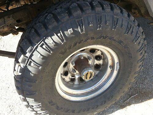 77 Jeep Grand Chief Wagoneer. Quadratrac w/part time conversion (new) and extra chain. New front brakes, and hubs. New rear brake pads. Seats brand new vinyl, new rhino interior. Has a 401 which I had the rear man seal just replaced. no leaks now and plenty of power. Brand new rubber, <20 miles on them. All guages and dash components work, A/C installed but needs new compressor. Great rig for camping/hunting. Winner to arrange local pickup only.