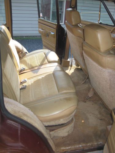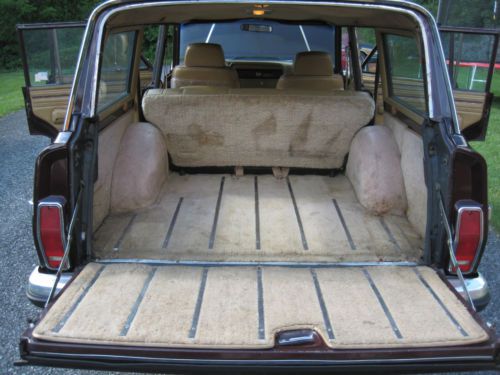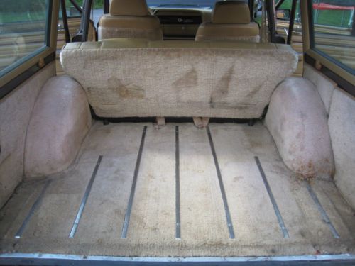 Here is one of the last AMC Jeeps built and this one is as typical a Wagoneer as you will find. It runs great and has fantastic 4WD, but it is rust prone. I have owned this Wagoneer for 10 years and it has been fairly dependable, but when the gas prices went up, I started using it less and less. Now it needs some work to make it great again and I do not feel like bothering. I had the floors fixed years ago, but they are soft again. Mostly by the front and rear passenger doors. The hump seems solid as does the load floor. The rear brake line on the drivers side rusted out and the exhaust needs replacement. It is lot drivable, but I wouldn't hit the highways with it (maybe on a dare involving cash). The heater core looks like it is leaking when I brought it out to take pictures. The hitch also is pretty tired from rust too. On the plus side, it always starts right up and the 4WD is operational and I have never gotten stuck with it even though I run street tires on it. It has a real 4 low on it which will pull out tree stumps. The paint on it still shines up and the woodgrain is pretty decent for a 26 year old car. The air did work but it has a slow leak and I had to recharge every other summer. It is still R12. I had a detachable face CD player professionally installed when I bought it that still works with newer front door speakers. The rear speakers are shot. The interior is very nice and the leather is still intact and pliable. The headliner is still up and isn't tore up. The front windows work fine but the rears are slow. Tailgate window works, but not the defroster. This would make a great driver if someone has the patience and time to do floor pans and all the other issues I tried to describe. It always got positive comments wherever I went with it because there just are not many of these around anymore. If you have any questions, feel free to ask. No money orders. No third party out of state checks. No chickens or other livestock. No Polish Zloty, Thai Baht or Mozambique Meticals. US Cash or cashiers check only.