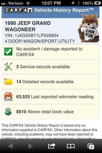 1990 jeep grand wagoneer 4x4 with 73k original miles awesome !!!!