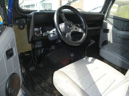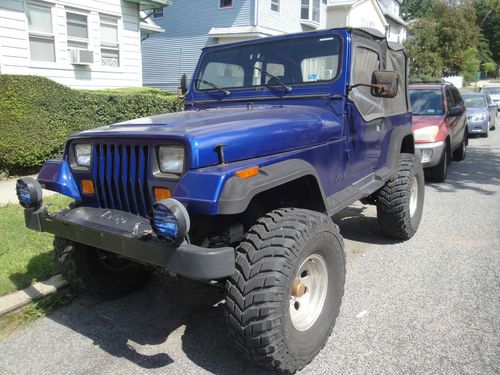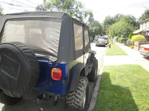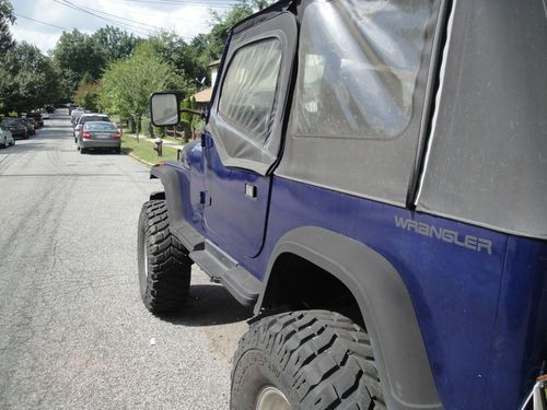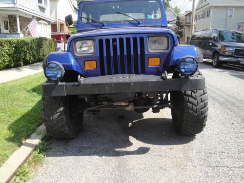 I have a 1988 Jeep Wrangler for sale. Its blue with grey interior. Rhino lined tub. Jasper 4.2 motor was installed in 2009 and the jeep had 108,433 miles. Jeep only has 113,457 miles now. So the motor has about 4k miles. Have all paper work from Jasper. She has a lift kit (which they do not make anymore with the springs). Has a 5 speed transmission. Just had the rear end rebuilt about a month ago. Fixed all vacuum and fuel lines. Installed a ridder rear diff cover. She is correctly geared for the 35in Mickey Thompson's. Everything is practically brand new on the motor. MSD box, Bigger battery, tune up and Borla headers. Has soft top and half doors. NO hard top. What you see is what you get. Runs and drive good. Only thing she does need is an exhaust and a tach in the dash. Has very little rust by windshield. No leaks. 4x4 works great. All extra parts go with it. Please email with all questions and email me you offers to buy it now.