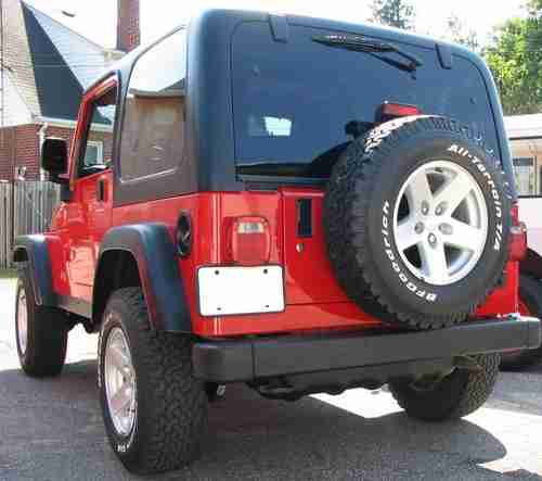 You are looking at a very clean '06 Rubicon that has never been off road or abused. I looked long and hard to find this Jeep, i sorted through alot of junk to find this gem. I am the second owner. The original owner was an older gentleman so i was told. It is pretty much loaded with options, i added the compass/temperature mirror using factory Jeep parts. I think the only options it doesn't have are the add a trunk and the 6-disc radio. This Rubicon has a hard top only, there is NO soft top with it. It has all the usual Rubicon features that i'm sure you already know about. The body has some stone chips and light scratches, there is a dent in the hood that will likely come out with a good smack from the underside. I added new wetsuit material type seat covers to the front seats, new Husky liner floor liners in the front only, the door pads have some scratches on them. I have performed all necessary fluid changes to both axles, transmission, engine(of course) and antifreeze too. I had the cooling system flushed at the dealership. I replaced the transmission pan and the engine oil pan with brand new Chrysler parts as the original ones were rusty and i didn't like them. The tires are a couple of years old and are getting down, they should give another year or so of service. The spare tire is still new, same brand/model as the road tires are. The Jeep is currently licensed and driven daily in the good weather, because it is winter here right now it is parked for the winter. I had it sprayed with oil last fall. It runs excellent, lots of power, runs straight down the road. I added a 2" BB lift along with a new Tom Woods custom rear drive shaft and adjustable rear lower control arms. It also has had the turn signal switch replaced, a new OPDA, a new Delco battery, belt, new parking brake shoes and lubed up the parking brake linkages, new lift struts on the rear hatch and one O2 sensor. I replaced the transmission mount with a new factory replacement unit and i converted the transfer case shifter linkage over to a stand alone unit from the troublesome/noisey factory setup. It is noted on carfax that at some point someone tapped the left front wheel and that caused the wheel to tilt in a very small bit that no one noticed at the time it happened until i bought the Jeep, i noticed it, so i installed an offset balljoint in the top and the lower was worn out so it got replaced with a standard balljoint. The wheel is straight and true now, i only did the balljoint for cosmetic reasons, i'm a stickler for things looking proper. No function of the axle is affected, it runs totally proper and smooth. I am telling you this so there is no surprises. As far as i know everything on this Jeep works as it should.