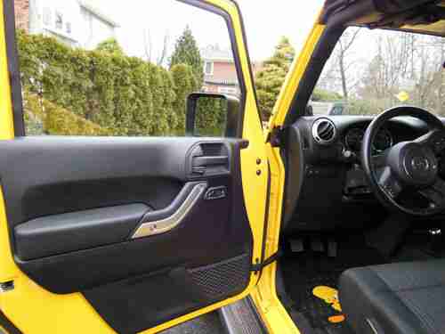 This is a 2011 Jeep Wrangler Rubicon in Detonator Yellow. The vehicle is in great condition, close to 19k miles, with an existing warranty. The vehicle has a small dent in the bumper and on the side of the door (no collision), as indicated by the photos. It comes with the freedom hard top, power locks/windows, and purchased the sidesteps separately last year. I am selling the jeep to purchase something more family-oriented. Local pick-up only.