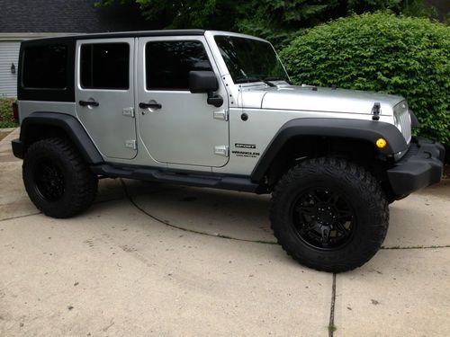 SELLING MY AWESOME 2011 JEEP WRANGLER UNLIMITED SPORT 6SPD, 4X4, WRANGLER. I NOW HAVE A COMPANY TRUCK AND DON'T NEED TWO VEHICLES. THE JEEP HAS THE FACTORY FREEDOM HARD TOP WITH THE HEADLINER KIT INSTALLED AND STORAGE BAG. IT HAS SATELLITE RADIO, 6SPD TRANSMISSION, AIR, CRUISE, TINTED WINDOWS, ROCK KRAWLER LIFT KIT, BILSTEIN 5100 SHOCKS, DUAL STEERING STABILIZER KIT, TOW PACKAGE, 5 35"X12.50X18 GOODYEAR MTR'S WITH KEVLAR. THE 4 TIRES ON THE JEEP HAVE 2000 MILES ON THEM AND THE SPARE IS NEW STILL. WHEELS ARE MOTO METAL 18X10 AND HAVE 2000 MILES ON THEM. I ALSO JUST INSTALLED THE TERAFLEX SPARE TIRE CARRIER UPGRADE. I BOUGHT THE JEEP STOCK WITH 24,000 MILES AND INSTALLED ALL THE EXTRAS. IT STILL HAS THE FACTORY BUMPER TO BUMPER WARRANTY. THERE IS NO DAMAGE TO THE JEEP AND NEVER HAD ANY ACCIDENTS. I HAVEN'T EVEN TAKEN IT OFF ROAD YET. I JUST CHANGED THE OIL AND AIR FILTER ALSO. I ALSO JUST BOUGHT NEW STAINLESS BRAKE LINES THAT I HAVEN'T INSTALLED YET BUT COME WITH THE JEEP.