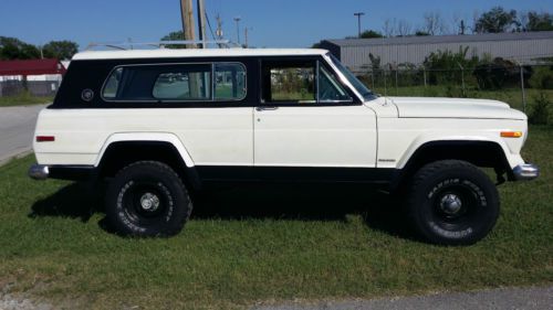 1977 Cherokee Chief S with 94k miles. This chief has automatic Quad Trac, 4" Lift, 33" Tires, Factory OEM AM FM Working radio, 360 V8 with Holley 4 barrel carb, Roof Rack, Tilt Wheel, Driving Lamps, Levi Interior(original front seats missing) crusie control(currently not working) original factory A/C(interior vents still in Jeep but no a/c compressor etc. currently in engine bay) all glass good, front dash has no cracks, Tach and Speedo work correctly. The only other gauge working in cluster is volt meter. The previous owner added extras gauges for fuel and water temp which work correctly. Jeep has been touched up with paint. Exhaust was update with Magna Flow 2 into 1. Questions let me know. I can get additional pictures and text to you if needed. Listed locally in Tulsa on Craigslist as well. Thanks Tim |