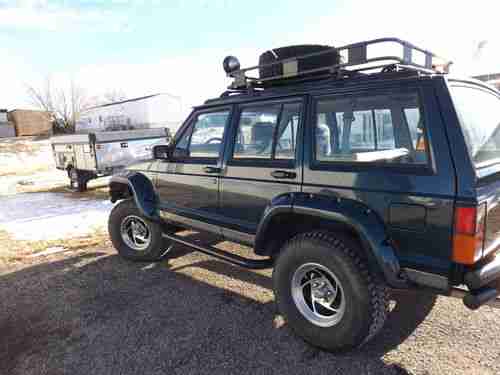 Tricked out 1995 Jeep Cherokee Sport with a 327 Chevy Motor that has only 4,300 miles on it. It has dual batteries, 3 inch lift, custom gauge cluster, dual exhaust, 700 R4 Tranny, rear lockers, roof rack, bushwacker fender flares, smitty built bumpers with receiver in front and back,cb radio, and KC lights.