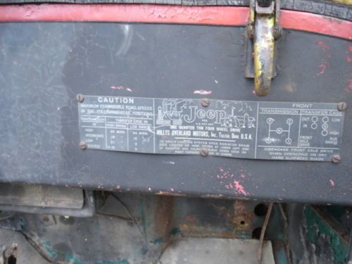 I cannot find a VIN Tag. I bought this and never got a Title or registration. The chassis is stamped #15001. The F Head engine that is disassembled is stamped # MD72150. E-Bay required a Title type so I chose Clear title even though there is NO TITLE Please look at the pictures and ask any questions before bidding. This Jeep and the parts are being sold "AS IS" and with a BILL OF SALE ONLY. The buyer is responsible for all transportation arrangements and costs. |