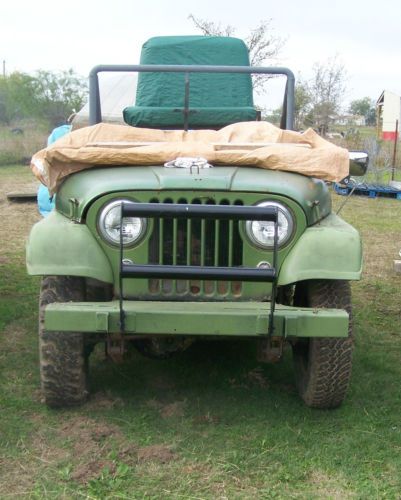 1959 CJ 5 Jeep. Used only off road on hunting lease and Farm. Have original clear title but have never registered for highway use. Has new plugs, wires, distributor, water pump, and runs great. Has Gun rack between front seats, raised back bench seat and animal rack in back. Windshield lays down. This was not a military jeep. Is 4 wheel drive. Runs Great! Sold as is.