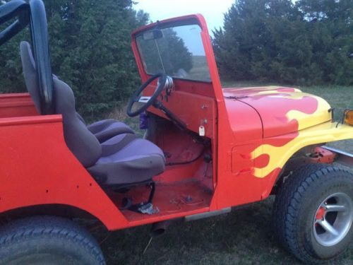 1975 AM General Jeep, 3-Speed Automatic Transmission, small block Chevy engine, 4 barrel holly carburetor, right hand steer, 2 seats with 5 point harness, roll bar, repainted, lots of power! For any questions call Cole at 785-623-9498.