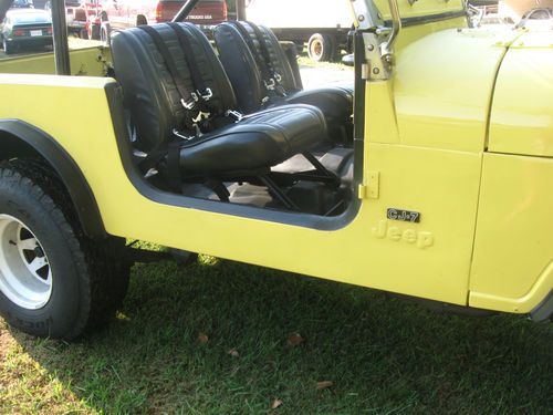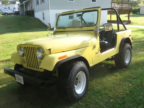 For sale is a 1976 Jeep CJ7. '76 was the first year for the CJ7. It comes with a hard top and hard doors as well as a brand new Best Top bikini. It was recently purchased from the original owner for my, soon to be 16 year old, daughter. It has less than 40,000 original miles. It was purchased from the original owner that did a body-off restoration about 10 years ago. Since purchased, I've added, new Falken Rocky Mountain 12X32X15 tires, pulled the gas tank and had it cleaned and replaced the fuel sensor/float mechanism, oil pressure sender, speedo cable, radiator, front tie rod ends, including adjuster bar and pitman sleeve. I ialso installed driver AND passenger cam-lock, four point restraints, put down bed-liner on the interior, replaced all of the drain plugs and replaced the tired dashboard knobs with billet aluminum ones. I also purchased a nice set of Jeep logo'd floor and cargo mats. It's not a show car, but a clean 37 year old Jeep. It has the original 304 V8 engine matched to a 3 speed manual transmission. Having been owned by a hot rod guy, it came with headers which need to be replaced. The parts are $245 delivered. If I replace them, the price joins the rest of the restored CJ's listed. Everything works as it should. The Jeep has black diamond plate rocker guards, but I took most of the photo's before they were installed so that you could see that I'm not hiding rocker rot so common in these trucks. I purchased the Jeep for $9000 and have put $2700 into it since. Jeep vetoed by wife that insists on airbags and ABS brakes...she's right as usual. I MUST SELL THIS JEEP! My loss is your gain. Call or text Mark @ 301-655-9247. Scammers will be run over with a Jeep, so avoid that. Listed elsewhere, I just dropped the price an additional $1500. There is not another '76 CJ7 in this condition for this money anywhere. Local sale only, will not ship!