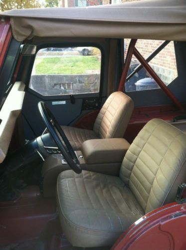 Original Body, Never lifted AMC 304 V8 Engine Rebuilt in Spring 2009 Upgrades include Top End Rebuilt by professional engine builder 3 angle valve job 2.00 / 1.50 intake / exhaust valves Stainless Valves Bronze Valve Guides Chromoly Retainers Crane Cams Roller Tip Rockers Mild Cam Roller Timing Chain New Crankshaft New Bearings Edelbrock Intake Edelbrock 4 barrell 500cfm carb Hedman long tube headers Flowmaster Exhaust New Centerforce Dual Friction Clutch Bestop Supertop - Not Shown in pictures Tremec T150 3-speed transmission Original Body, paint, seats and dash pad. Runs Great! Email with questions |