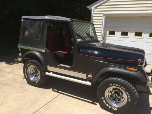 for sale a 1978 Jeep CJ5. Jeep has a Fiberglass body with a steel hood. Drivetrain is a 350 Chevy with a 3 speed manual trans. Jeep comes with an extra set of wheels and tires. Jeep runs,stops and drives good. Any questions .please call 440-637-1070,or e-mail me. Thanks