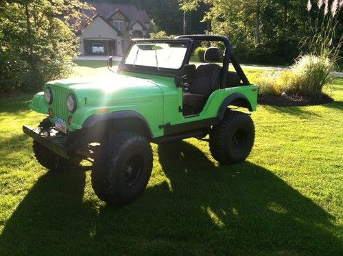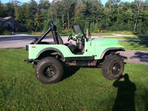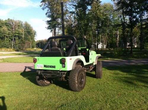 For sale is a 1979 Jeep CJ5 with 35" tires and a total of 9" of lift (5" suspension lift and 4" body lift). Manual 3 speed transmission, brand new clutch (less than 10 miles on the Jeep with the new clutch), AMC V8, after market fibre glass body and top, and hard sided doors with sliding windows. There are several instruments that have been added to the Jeep such as tachometer, voltmeter, temperature gauge, and gas tank level. The original dash equipment is in place however most of the backlighting does not work and the speedometer does not work either. Missing driver side mirror. This is a fun Jeep to take out to the woods or the trails with friends, and is street legal. Please email for questions.