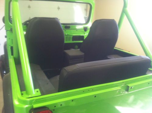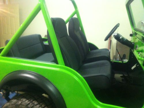 I have spent the last 16 months restoring this jeep from the frame up for the Hurricane Utah rotary car show. Brand new rebuilt and bored over .30 AMC 304 with 35 miles on it. True Dual magnaflow exhaust out the rear. Rebuilt tranny 3 speed and reverse. Edelbrock performer carb 600 cfm. New drivelines made custom. New seats and new center console. All new wiring through the whole jeep. Fog lights wired to hidden switch. 4 inch rough country suspension lift. New gas tank and fuel lines and brake lines and all new brakes all around. Line lock E brake is custom and also the clutch. Everything is new and works great. The tires are 33x12.5/15 general grabber red letters and look amazing. I have all the pictures and receipts of the whole project and it all goes with the jeep. Buyer is responsible for shipping or pickup. The frame and axles and wheels have all been powder coated. It has 4:10 Gears in the axles which is perfect with the 33 inch tires. Runs amazing and sounds awesome with the dual exhaust. It needs a windshield wiper switch and sprayer and I did not reinstall the factory heater but it does come with the heater and knobs and can be installed. I will answer any other questions. Thanks and happy bidding. |