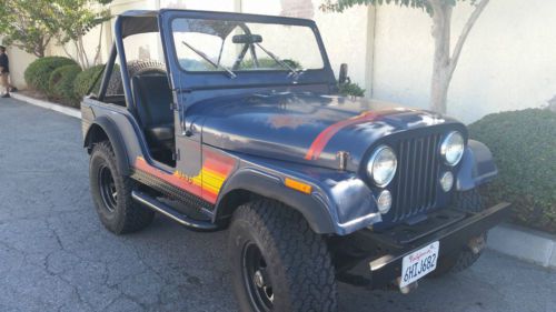 1980 Jeep Cj5 in absolutely perfect condition. Needs Nothing Original paint is in great shape NO RUST OR BODY WORK Engine was rebuilt with about 10k miles on it with new Carburetor, new ignition system and most parts being replaced. Shifts through all 4 gears and reverse with no problems Has New clutch kit New Wheels and Tires New Shocks and sway bar bushings with quick disconnects Has built front and rear axles in it, Not sure on gears but on the freeway it will do 60 in 4th at about 3000rpm The Jeep Is Perfect If you are looking at this, you know what it is. WILL POST VIDEOS SOON |