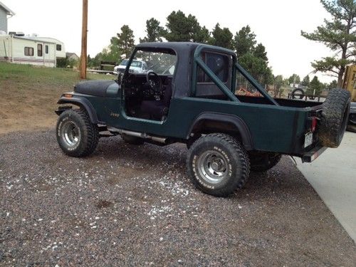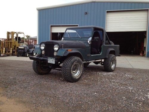 I have up for auction a 1982 Jeep Scrambler CJ 8 with a 304 V8 and a T-18 4spd standard transmission(out of a 1975 cj-5), Electronic ignition and wiring out of a 82 wagoneer, hydraulic clutch, power steering.Runs and drives fine, sounds great, It has a Superlift 4 inch lift and shocks, 33 12.50 15 tires, Bestop aqua seats in excellent shape, fenderwell headers, power steering, new grant steering wheel, new dashpad, new edlebrock carb, nice bulkhead and top, also have doors in rough but usable shape. Have back seat with tear in it.New front bumper with receiver. Sway bar disconnects, NO catalytic converter so NOT emissionable. Has rust in floor boards, none in frame, none in steel body, all factory gauges and heater controls have been replaced, stock oil pressure and water temp gauges are not hooked up, after market gauges are. Original Odometer showed 56,000. Has brand new water pump that makes squeaking noise. B&M shifter handle on trans, No handle on transfer case, Not a perfect truck but a great platform to work from. I would take it 4 wheeling but I wouldn't drive it 1000 miles today. Spare size does not match. I have owned it for 7 years and maybe put 500 miles on it since I have had it. I bought it off ebay in Ohio, had a west Virginia title. Previous title was Arizona. This truck originally had a 4 cylinder and standard trans. I want to be honest about everything as I do value my feedback. Please ask questions before you buy no refunds. Come on out and look and drive it. I will deliver to Denver or Colorado Springs after it is paid for in full. If you want to use paypal for full amount it will be an additional 5%.