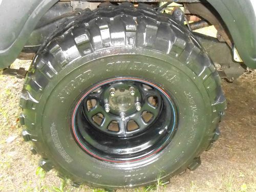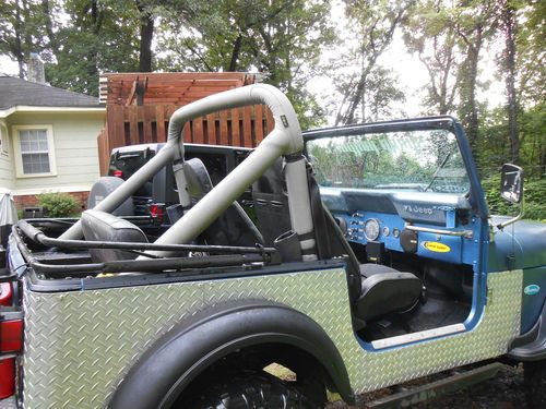 258 CI engine (the good one...lol), 33" Superswamper Tires, new wheels, Weber 2bb progressive carb, Detroit locker in front, one pc axles in rear, Ramsey patriot 9k lb winch, custom made heavy duty bumbers, and spare tire carrier, high lift jack, Rugged Ridge bucket seats, Custom made diamond plate aluminum center console (lockable), CB radio, diamond plate rapped 3/4 around tub. Also included, but not in pics: "Best Top" full top with doors and all, along with towbar to pull her to the next excursion! :-)