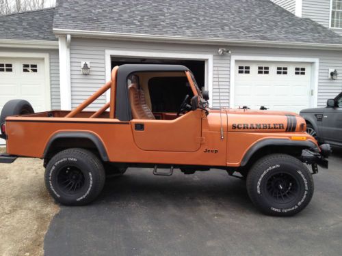 You are looking at a absurdly clean, rust free and unmolested Jeep Scrambler. It has been meticulously cared for and Never been off road. It runs and drives as if it were new, All gauges work. transmission is tight and 4x4 works as it should. The smooth running 258 Inline 6 is one of the most reliable and Jeep motors ever built. It does not smoke or leak anywhere. It starts up like a new car and idles smoothly. This is a true survivor with only minor modifications and maintenance in amazing condition. It is not a frame off or restore but truly well kept. The frame rust free and original paint on the frame as you would see with a 3 year old car. The dash is great, the leather seats have slight cracking but in good condition. It has custom half doors and a hard top. Soft doors in good shape go with it. Tires have 90% tread. A fresh tank of gas and oil change and I wouldn't hesitate to drive this across the country. It is that good. Don't bother low balling offers. If you are looking at this, you know how rare Scramblers are and especially in this condition. The odometer reads 32,500 and given the condition, may be accurate but I cannot confirm. You will not be disappointed. Believe me, I don't want to sell it, but I have too many toys. Do not bid unless you are ready to show up with cash in hand. Contact me before bidding. I am flexible on setting up a time to show and meet the shipping company if needed. This is also for sale locally so I may end the auction early if it sells.