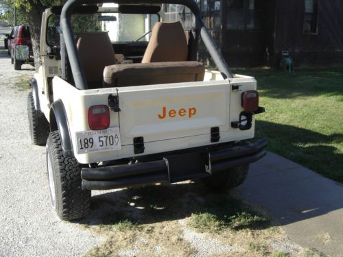 FOR SALE: 1984 CJ7 JEEP, 6 CYLINDER-- AUTOMATIC. JEEP HAS HARD TOP AND HARD DOORS, POWER STEERING AND POWER BRAKES. MOTOR: HAS BEEN REBUILT,NEW CAM ,LIFTERS ,ROCKERS, PISTONS +040, RINGS+040 ,TIMMING GEARS+CHAIN ,CAM BEARINGS ,ROD BEARINGS + MAIN BEARINGS, ALL GASKETS AND ,OIL PUMP AND WATER PUMP. MOTOR WAS CLEANED AND BOARD VALVES GROUND AND HEAD RESURFACED. CARB REBUILT NEW PLUGS , COIL, WIRES, AND BATTERY. ELECTRIC OIL GAUGE IS NOT RIGHT ,I HAVE REPLACED GAUGE AND SENDER. MANUAL GAUGE OIL PRESURE SAYS 45 LBS. AT IDLE. BODY: RUST WAS REMOVED AND NEW METAL WELDED IN,PRIMERED AND PAINTED . NEW STEERING STAINLESS COLUMN INSTALLED. NEW GEAR BOX NEW POWER STEERING HOSES .TWO NEW BUCKET SEATS INSTALLED. NEW STAINLESS STEEL HINGES ,MIRRORS ,AND GAUGE PLATE .BRAKES REBUILT . TIRES LIKE NEW. BODY HAS A 1" LIFT ON BUSHINGS HARD TOP IS BROWN LIKE SEATS. HARD DOORS ARE TAN LIKE JEEP BODY WITH NEW BROWN DOOR PANELS, STORED IN GARAGE WILL TRY TO TAKE PICTURES LATER LOCATED IN BEARDSTOWN ILLINOIS ,WILL SHIP IF YOU MAKE ALL ARRANGMENTS. SOLD AS IS, I HAVE 100%FEED BACK . CAN BE SEEN AT 1003 GRAND AVE BEARDSTOWN, ILLINOIS 62618. ASK ME ANY QUESTIONS 217-323-2369 THANK'S FOR LOOKING ED |